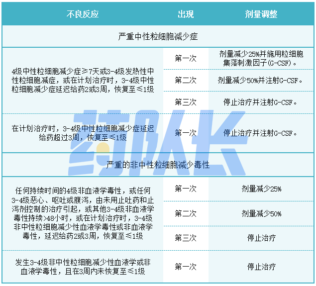 出现输注相关反应时,应减慢或暂停输注速度,对于危及生命的反应,应停止治疗。具体的剂量调整信息见表。